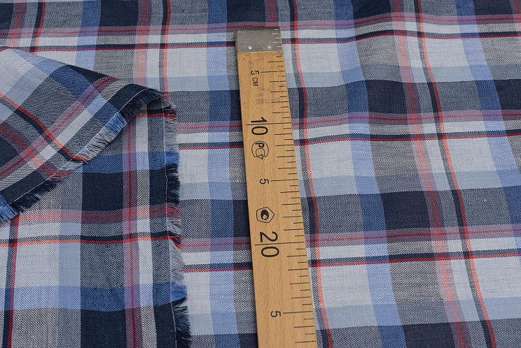 Лен костюмный (н) сине-красно-голубая клетка - цена 2 400 ₽ У нас самые доступные цены на Льняные ткани в Москве, доставка по всей России - интернет магазин тканей Тессутидея. Артикул товара для заказа - 16-0761. Страна производства ткани – Италия. Ширина этого материала - 150. Состав - Лен 100%. Наличие остатков на складе - 2.5 м