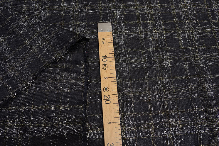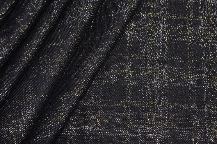 Лен костюмный с люрексом (н) серебряно-золотая клетка из люрекса на черном - цена 2 600 ₽ У нас самые доступные цены на Льняные ткани в Москве, доставка по всей России - интернет магазин тканей Тессутидея. Артикул товара для заказа - 16-0731. Страна производства ткани – Италия. Ширина этого материала - 150. Состав - Лен 75% люрекс 25%. Наличие остатков на складе - 7.6 м