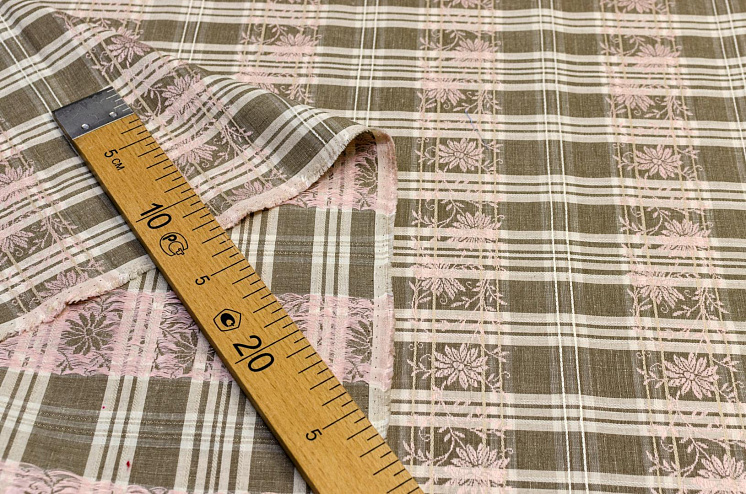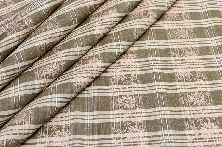 Лен (н) с розовым жаккардовым рисунком на коричневой клетке - цена 3 500 ₽ У нас самые доступные цены на Льняные ткани в Москве, доставка по всей России - интернет магазин тканей Тессутидея. Артикул товара для заказа - 16-0476. Страна производства ткани – Италия. Ширина этого материала - 160. Состав - Лен 70% хлопок 30%. Наличие остатков на складе - 5.7 м