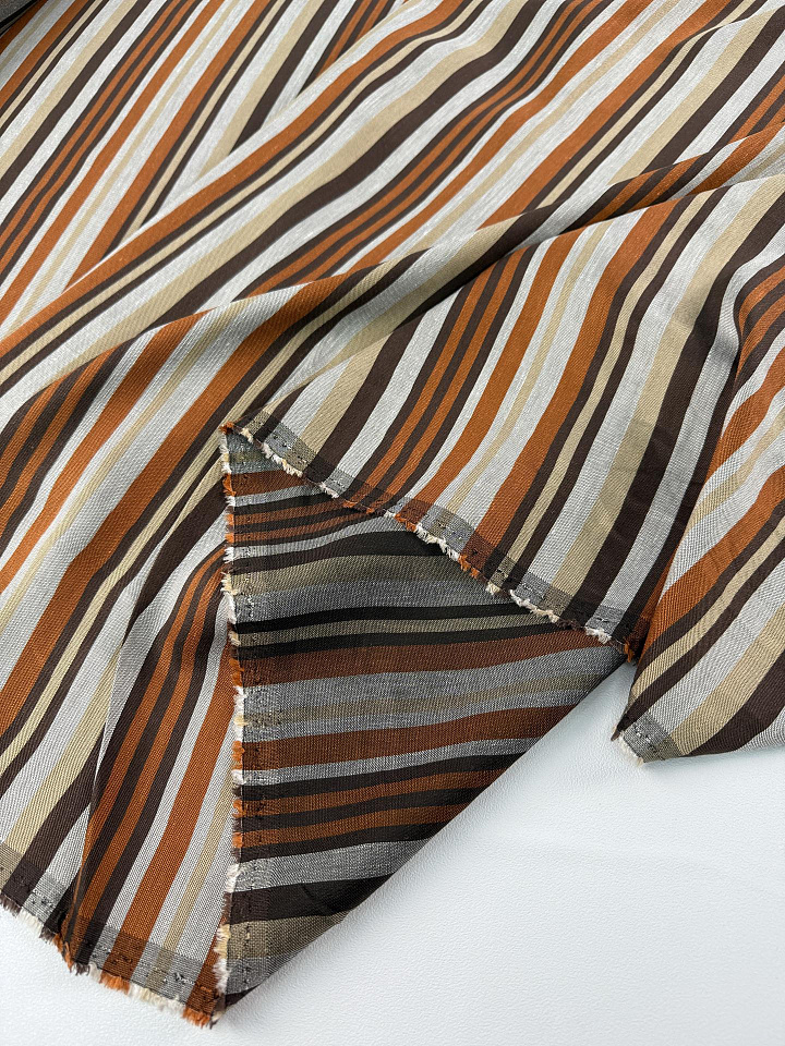 Лен (н) серо-бежево-коричневая полоска - цена 2 100 ₽ У нас самые доступные цены на Льняные ткани в Москве, доставка по всей России - интернет магазин тканей Тессутидея. Артикул товара для заказа - 16-1152. Страна производства ткани – Италия. Ширина этого материала - 155. Состав - Лен 100%. Наличие остатков на складе - 10.8 м