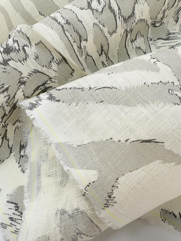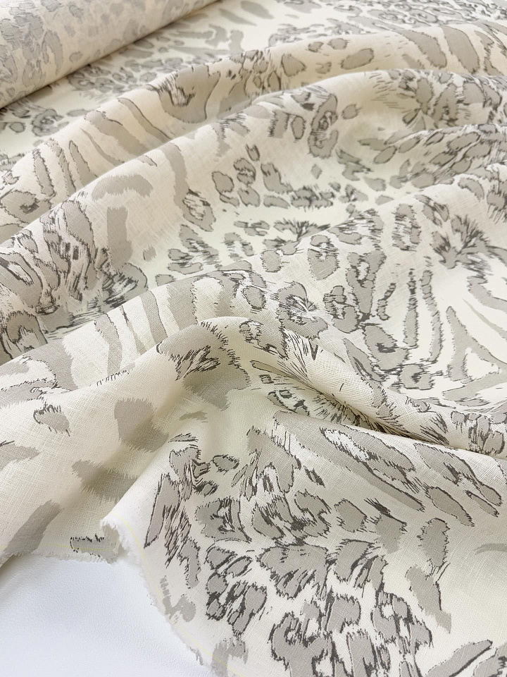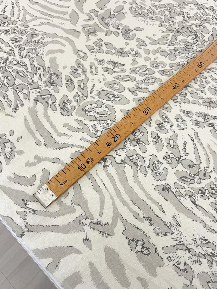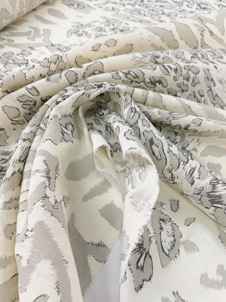 Лен (н) серый стилизованный хищный принт на молочном - цена 3 200 ₽ У нас самые доступные цены на в Москве, доставка по всей России - интернет магазин тканей Тессутидея. Артикул товара для заказа - 16-1133. Страна производства ткани – Италия. Ширина этого материала - 140. Состав - Лен 100%. Наличие остатков на складе - 9.5 м