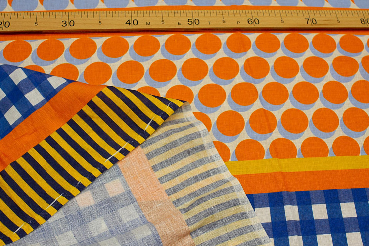 Лен (н) яркий геометрический орнамент - цена 2 200 ₽ У нас самые доступные цены на Льняные ткани в Москве, доставка по всей России - интернет магазин тканей Тессутидея. Артикул товара для заказа - 16-0909. Страна производства ткани – Италия. Ширина этого материала - 150. Состав - Лен 98% эластан 2%. Наличие остатков на складе - 2.2 м