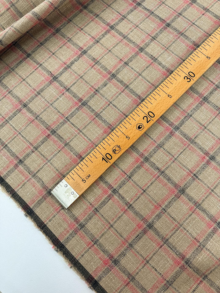 Лен+шелк (н) красно-черная клетка на бежевом - цена 4 200 ₽ У нас самые доступные цены на в Москве, доставка по всей России - интернет магазин тканей Тессутидея. Артикул товара для заказа - 16-1139. Страна производства ткани – Италия. Ширина этого материала - 150. Состав - Лен 65% шелк 35%. Наличие остатков на складе - 4.3 м