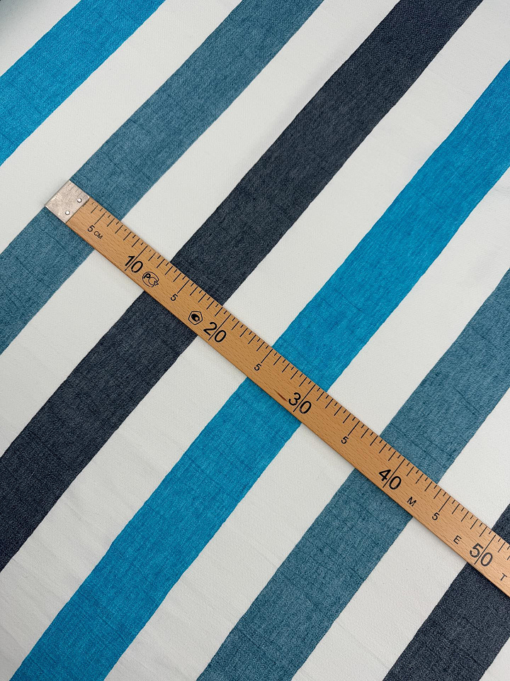 Лен+вискоза (н) серо-бело-сине-бирюзовая полоска Арт. 16-1163