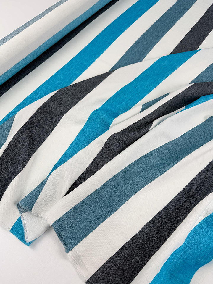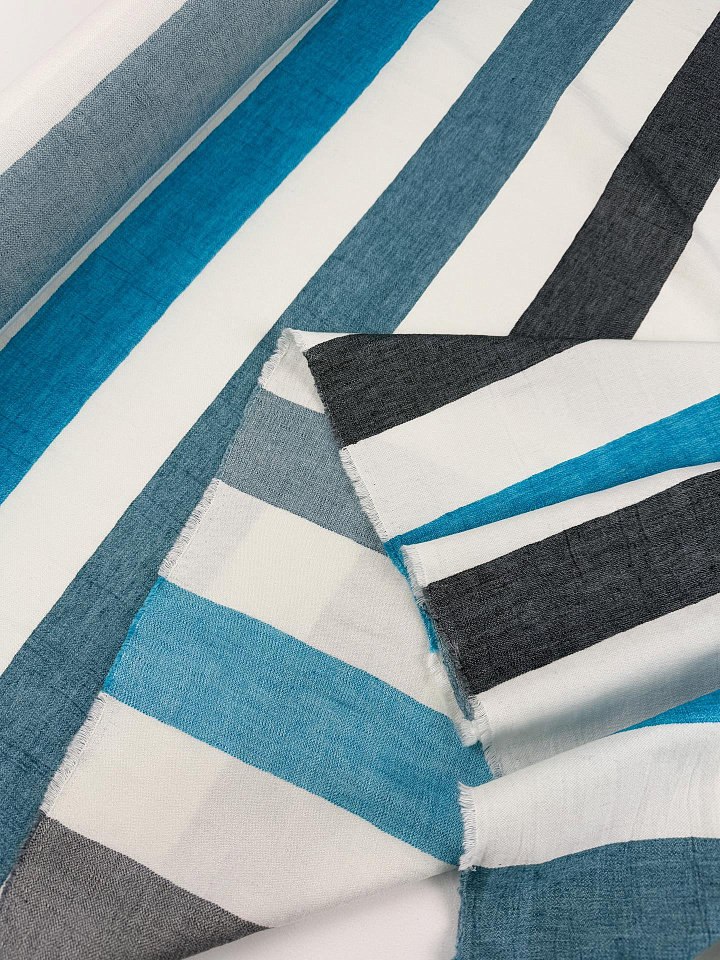 Лен+вискоза (н) серо-бело-сине-бирюзовая полоска - цена 2 800 ₽ У нас самые доступные цены на в Москве, доставка по всей России - интернет магазин тканей Тессутидея. Артикул товара для заказа - 16-1163. Страна производства ткани – Италия. Ширина этого материала - 140. Состав - Лен 60% вискоза 40%. Наличие остатков на складе - 10 м