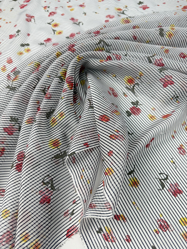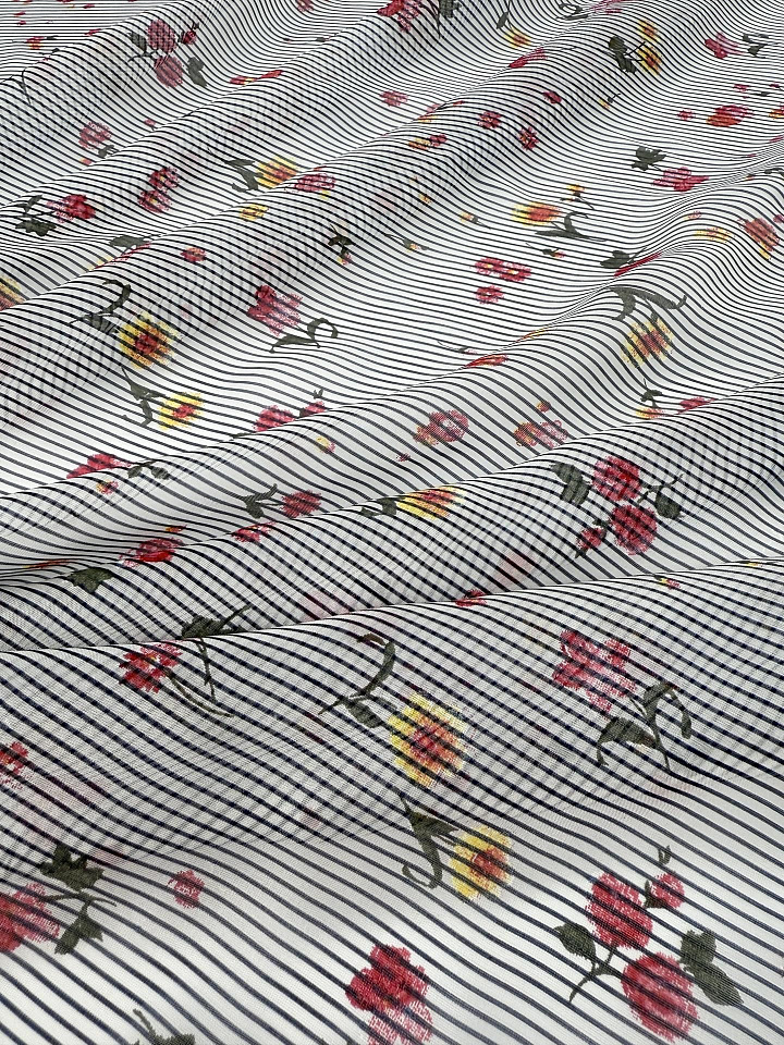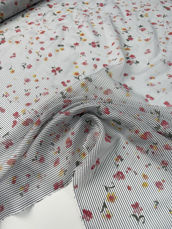 Маркизет (н) мелкий цветочный рисунок на черно-белой полоске - цена 2 500 ₽ У нас самые доступные цены на в Москве, доставка по всей России - интернет магазин тканей Тессутидея. Артикул товара для заказа - 10-4744. Страна производства ткани – Италия. Ширина этого материала - 130. Состав - Шелк 50% хлопок 50%. Наличие остатков на складе - 9.4 м