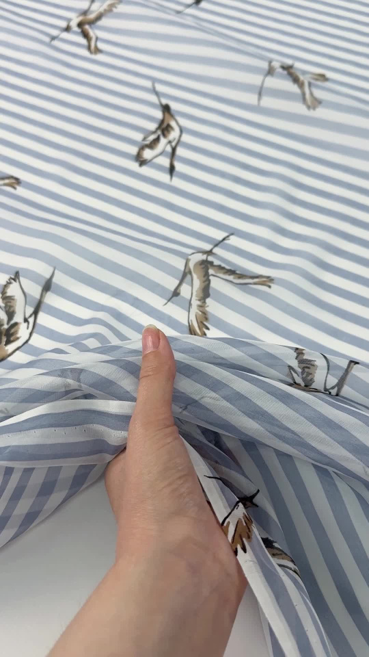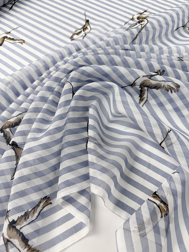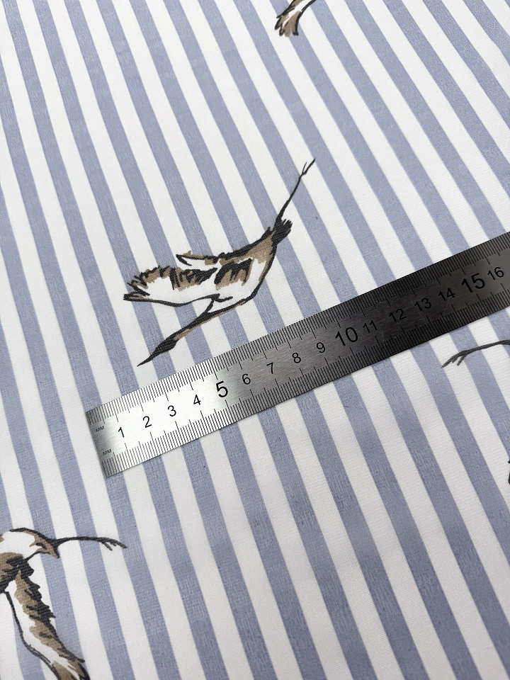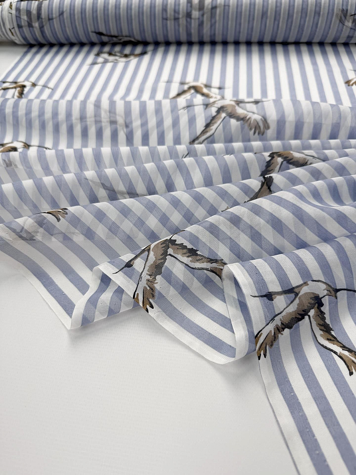 Маркизет (н) птицы на светло-сине-белой полоске - цена 2 500 ₽ У нас самые доступные цены на в Москве, доставка по всей России - интернет магазин тканей Тессутидея. Артикул товара для заказа - 10-4747. Страна производства ткани – Италия. Ширина этого материала - 130. Состав - Шелк 50% хлопок 50%. Наличие остатков на складе - 6.3 м