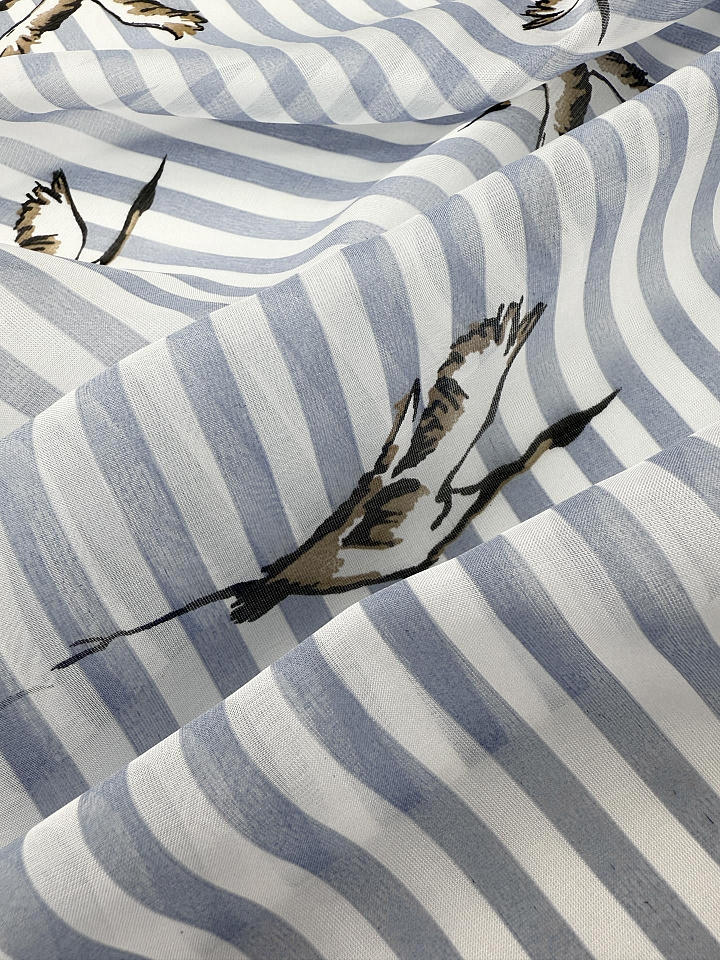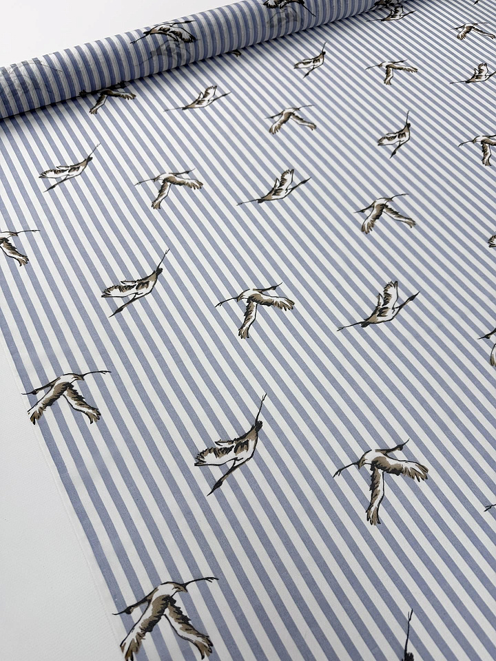 Маркизет (н) птицы на светло-сине-белой полоске Арт. 10-4747