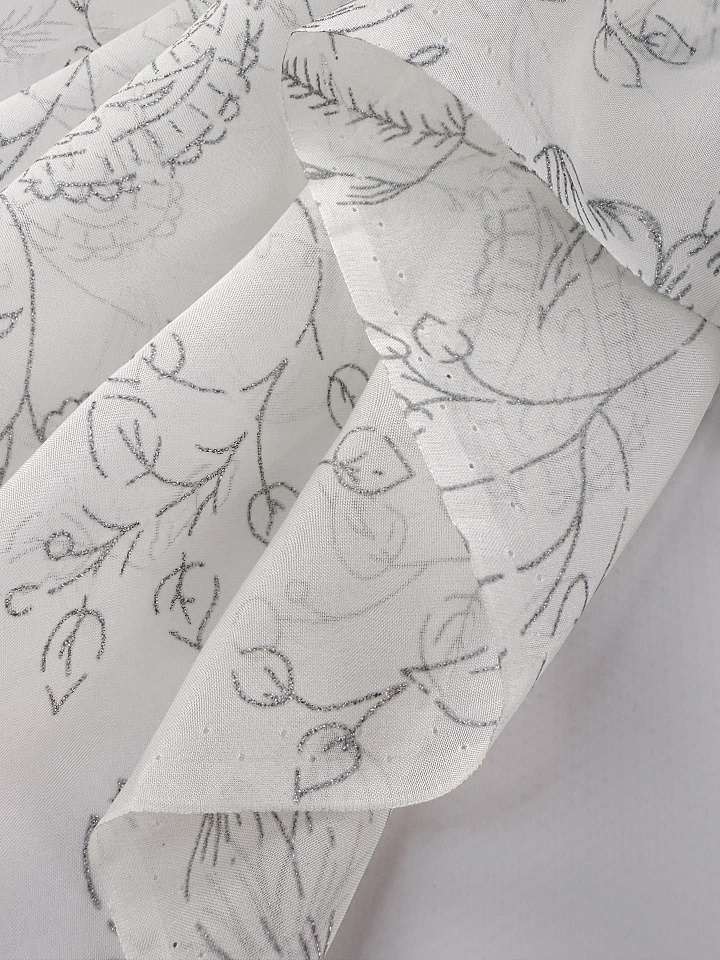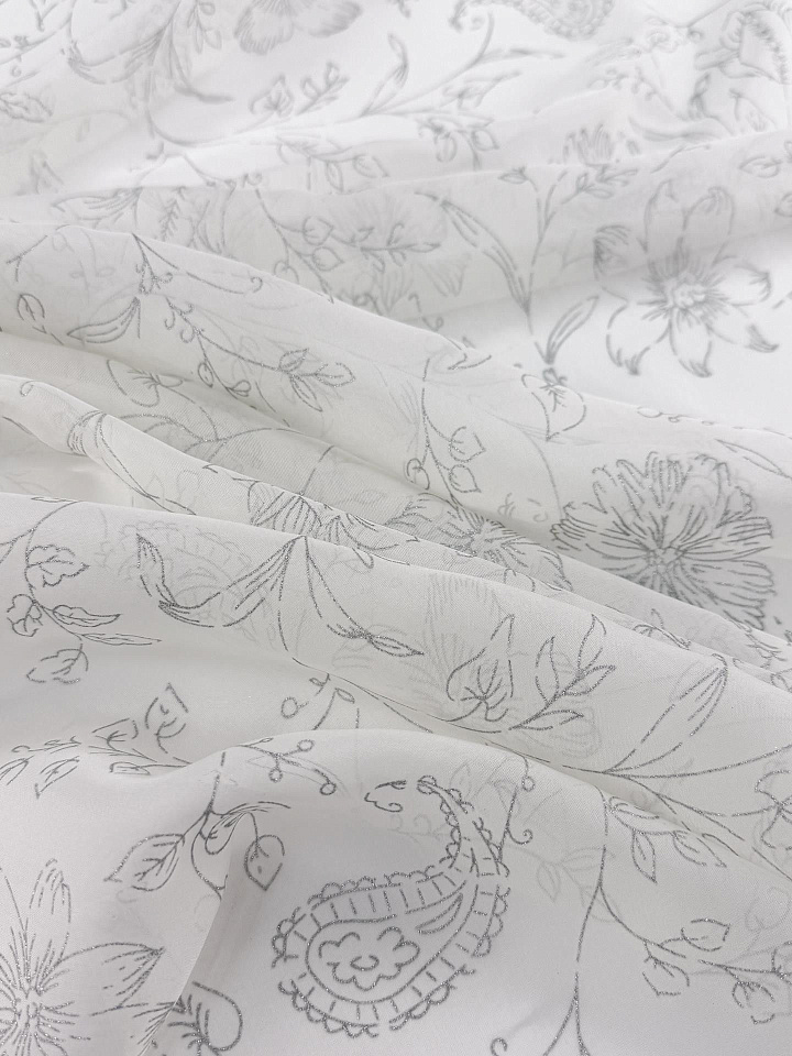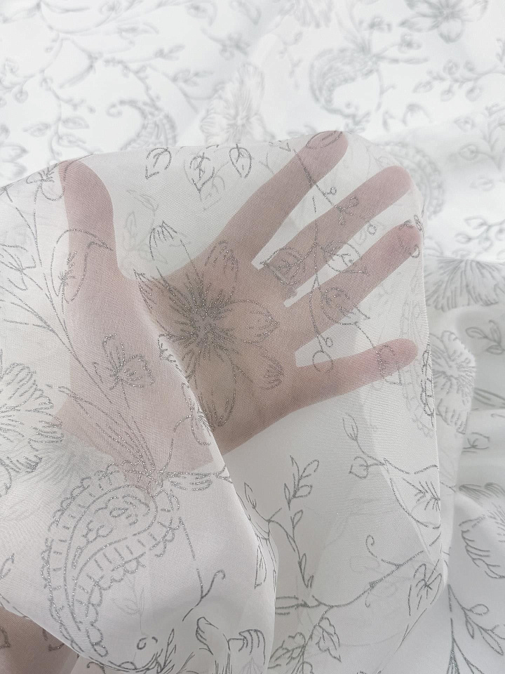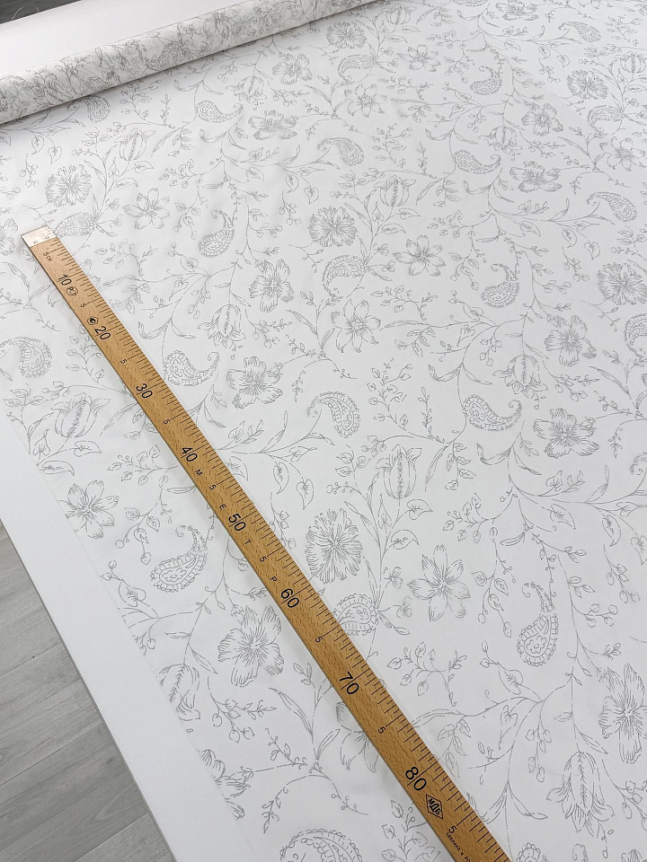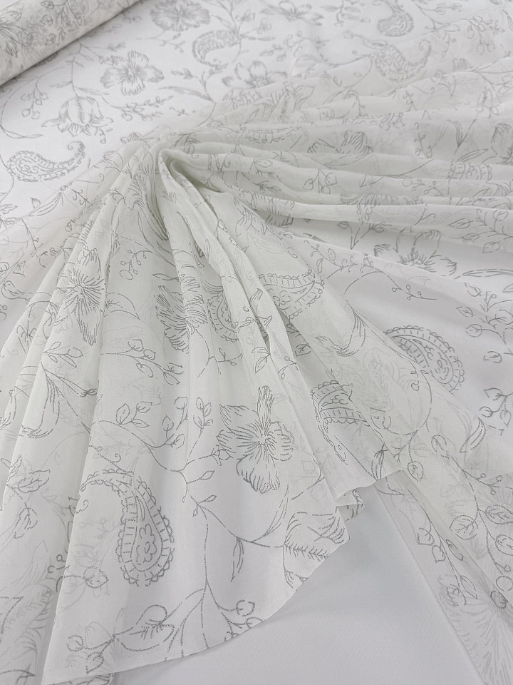 Маркизет (н) серебряный растительный рисунок на белом - цена 2 500 ₽ У нас самые доступные цены на в Москве, доставка по всей России - интернет магазин тканей Тессутидея. Артикул товара для заказа - 10-4748. Страна производства ткани – Италия. Ширина этого материала - 130. Состав - Шелк 50% хлопок 50%. Наличие остатков на складе - 7.9 м
