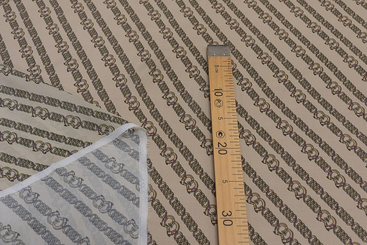 Маркизет (н) цепи на светло-бежевом - цена 2 800 ₽ У нас самые доступные цены на Маркизет в Москве, доставка по всей России - интернет магазин тканей Тессутидея. Артикул товара для заказа - 10-2593. Страна производства ткани – Италия. Ширина этого материала - 140. Состав - Шелк 50% хлопок 50%. Наличие остатков на складе - 3.1 м