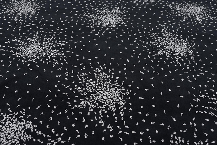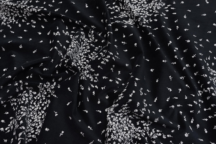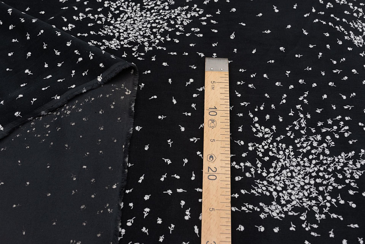 Микровельвет стрейч (н) белый цветочный рисунок на черном Арт. 01-7062