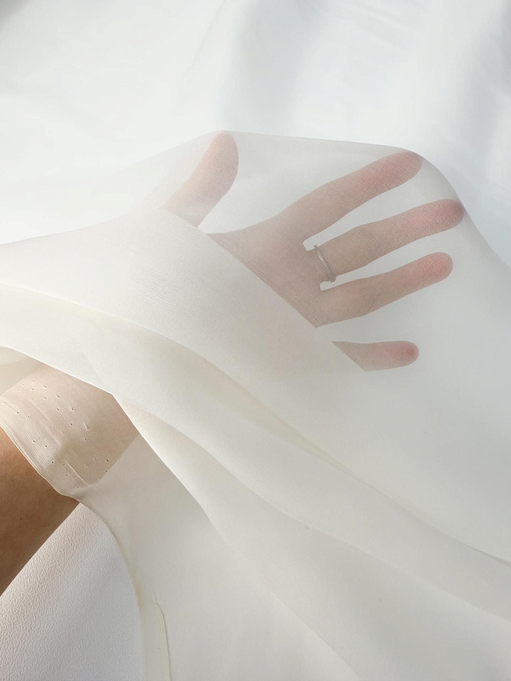 Органза 40 г/м (о) слоновая кость - цена 2 400 ₽ У нас самые доступные цены на в Москве, доставка по всей России - интернет магазин тканей Тессутидея. Артикул товара для заказа - 10-4791. Страна производства ткани – Италия. Ширина этого материала - 140. Состав - Шелк 100%. Наличие остатков на складе - 93.9 м