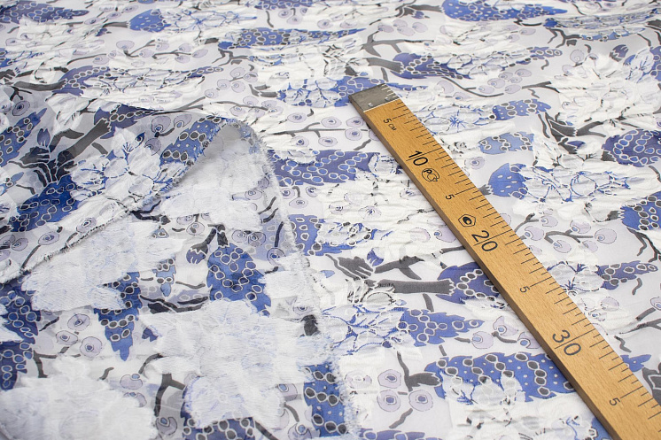 Органза филькупе (н) сине-черно-белый орнамент на белом - цена 2 800 ₽ У нас самые доступные цены на Органза в Москве, доставка по всей России - интернет магазин тканей Тессутидея. Артикул товара для заказа - 03-6066. Страна производства ткани – Италия. Ширина этого материала - 140. Состав - Шелк 70% полиамид 30%. Наличие остатков на складе - 6 м