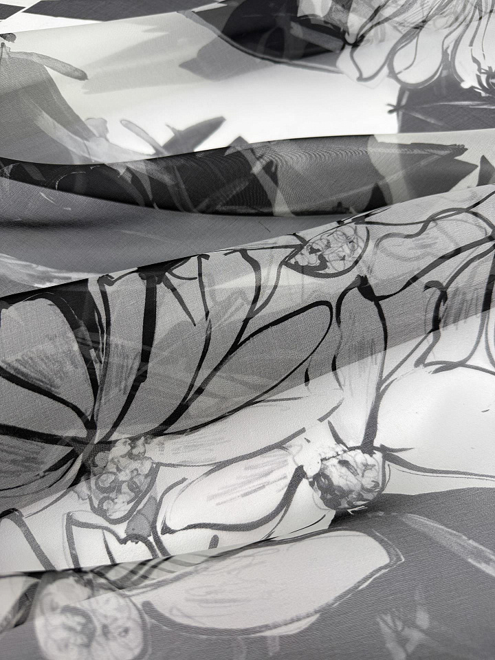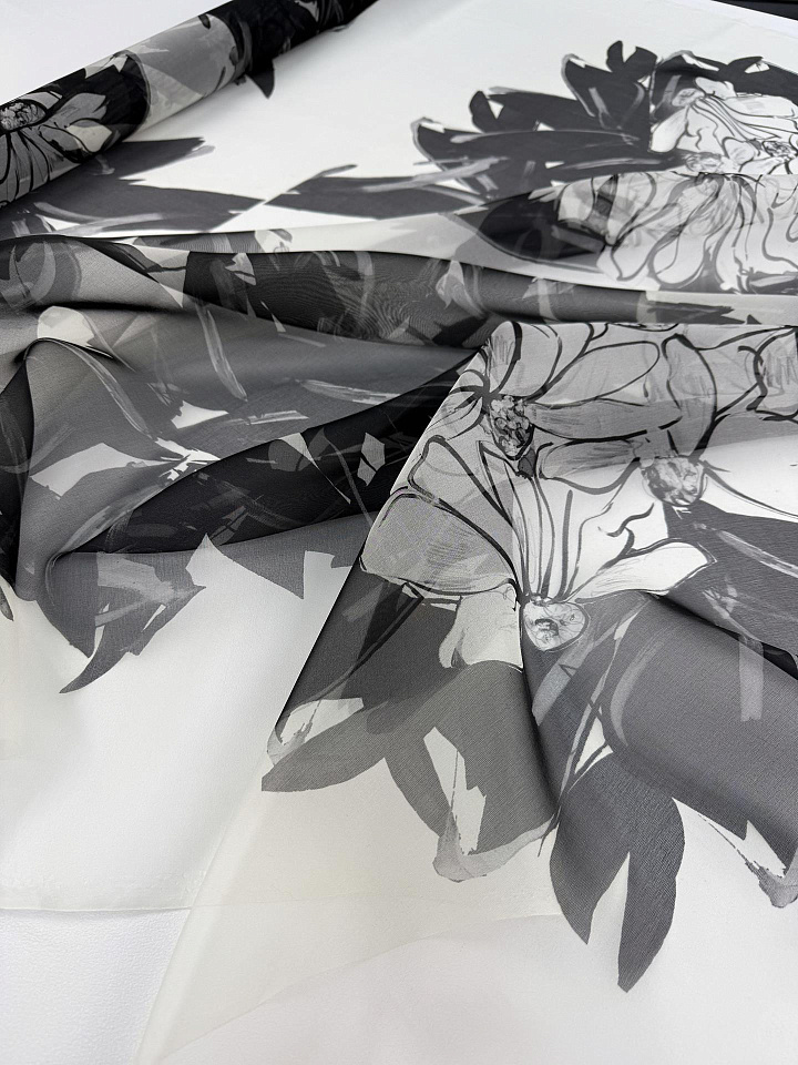 Органза купон (1,2м) (н) крупный черно-белый рисунок на айвори - цена 3 500 ₽ У нас самые доступные цены на Органза в Москве, доставка по всей России - интернет магазин тканей Тессутидея. Артикул товара для заказа - 10-4828. Страна производства ткани – Италия. Ширина этого материала - 135. Состав - Шелк 100%. Наличие остатков на складе - 16 м