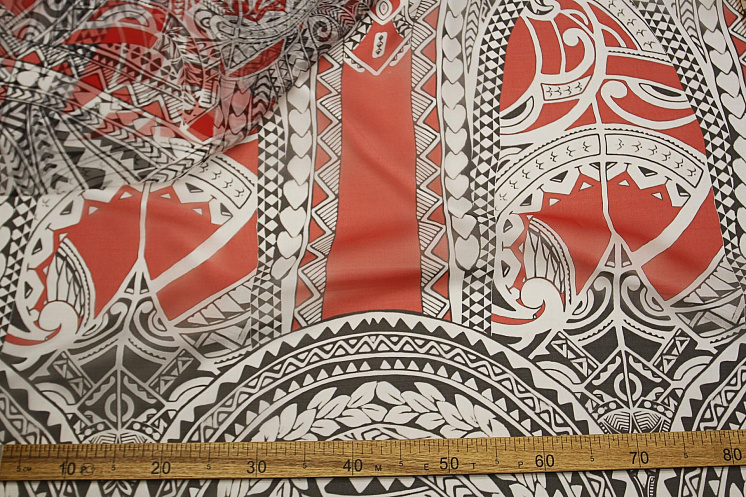Органза купон (2м) (н) красно-бело-черная геометрическая абстракция Арт. 10-3972