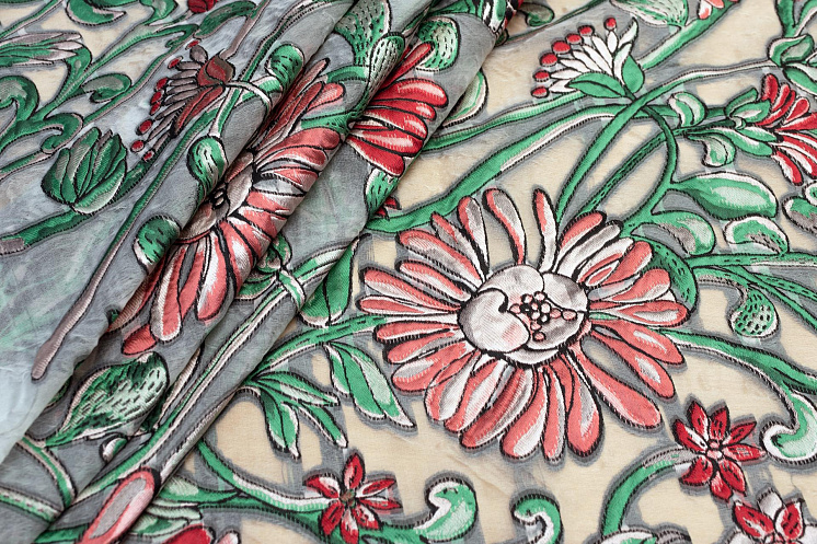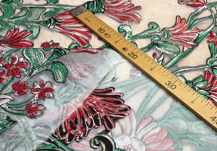 Органза (н) красно-зеленый цветочный орнамент на белом в стиле Ruffo Coli - цена 4 800 ₽ У нас самые доступные цены на Органза в Москве, доставка по всей России - интернет магазин тканей Тессутидея. Артикул товара для заказа - 03-5969. Страна производства ткани – Италия. Ширина этого материала - 145. Состав - Шелк 60% ацетат 40%. Наличие остатков на складе - 1.45 м