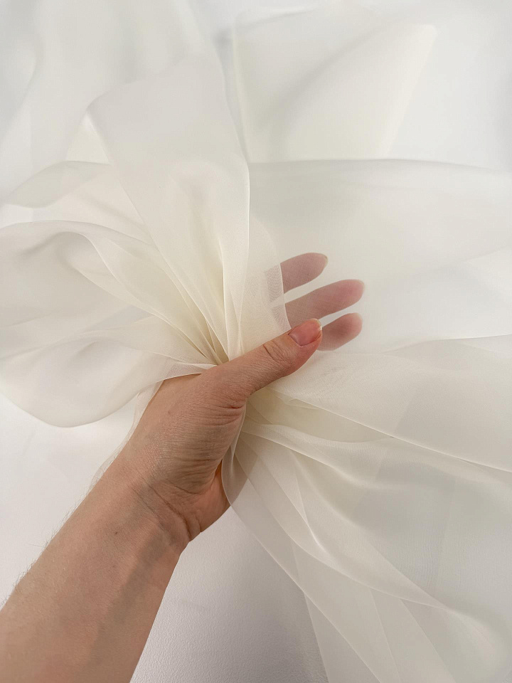 Органза (о) молочная - цена 2 400 ₽ У нас самые доступные цены на в Москве, доставка по всей России - интернет магазин тканей Тессутидея. Артикул товара для заказа - 10-5116. Страна производства ткани – Италия. Ширина этого материала - 120. Состав - Шелк 100%. Наличие остатков на складе - 37.3 м