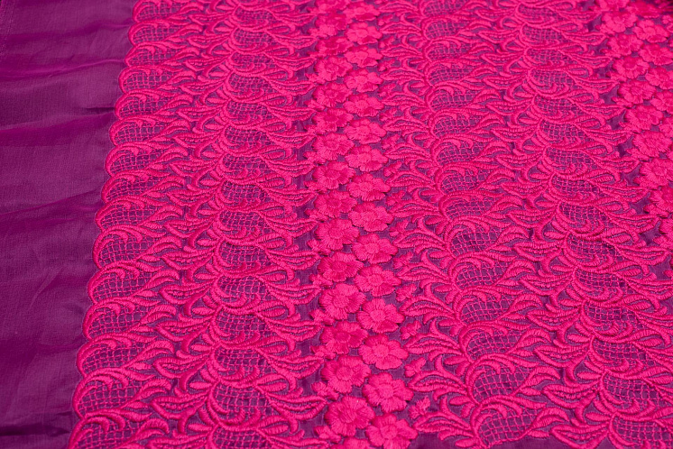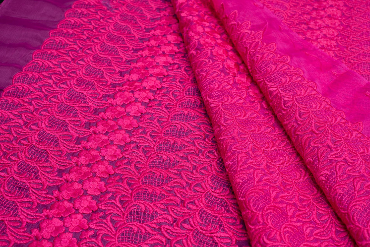 Органза с вышивкой (о) фуксия - цена 4 800 ₽ У нас самые доступные цены на Органза в Москве, доставка по всей России - интернет магазин тканей Тессутидея. Артикул товара для заказа - 10-0742. Страна производства ткани – Италия. Ширина этого материала - 140. Состав - Шелк 60% хлопок 40%. Наличие остатков на складе - 1.7 м