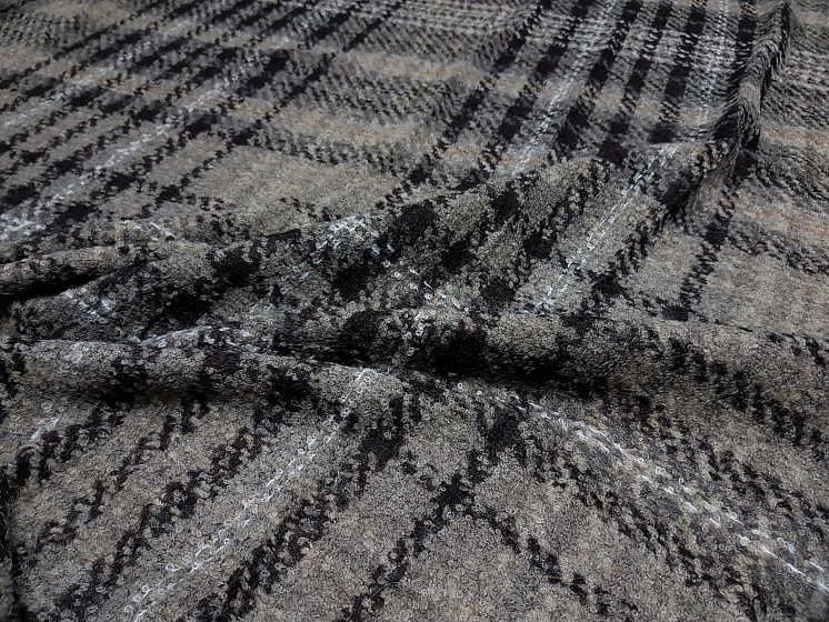 Пальтовая букле (н) клетка бежево-коричневая - цена 1 960 ₽ У нас самые доступные цены на Пальтовые ткани в Москве, доставка по всей России - интернет магазин тканей Тессутидея. Артикул товара для заказа - 09-1293. Страна производства ткани – Италия. Ширина этого материала - 150. Состав - Шерсть 100%. Наличие остатков на складе - 1.4 м