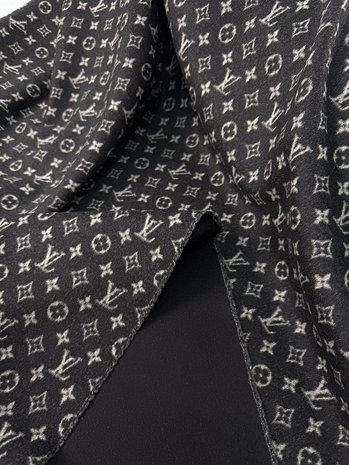 Пальтовая кашемир дабл двухслойная 430 г/м (н) логотип на темно-сером/черная - цена 42 500 ₽ У нас самые доступные цены на в Москве, доставка по всей России - интернет магазин тканей Тессутидея. Артикул товара для заказа - 09-2161. Страна производства ткани – Италия. Ширина этого материала - 130. Состав - Кашемир 100%. Наличие остатков на складе - 18.9 м