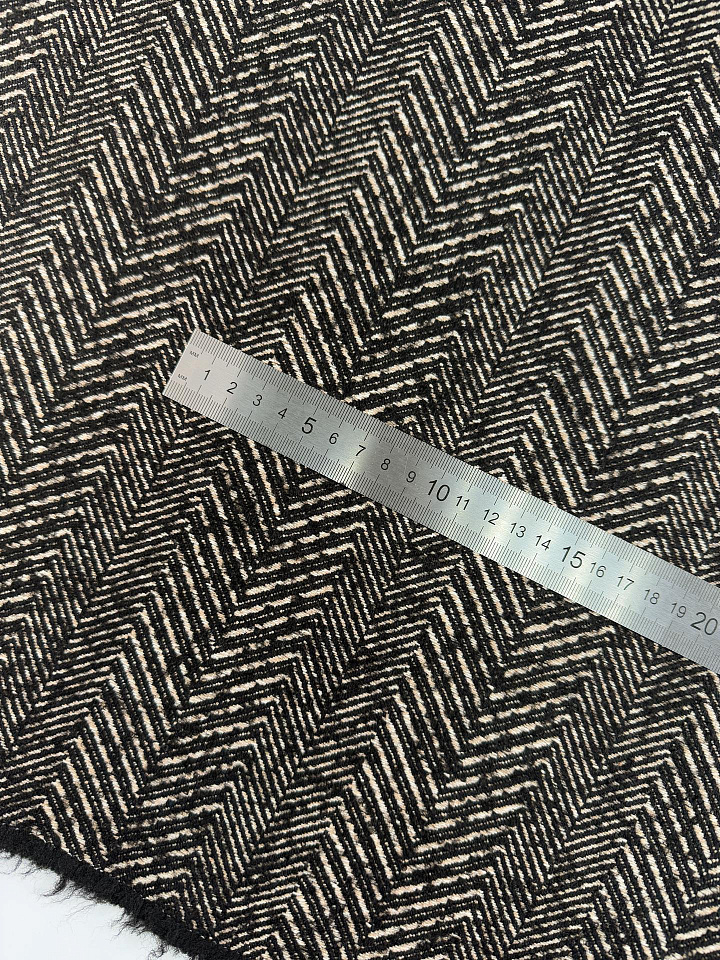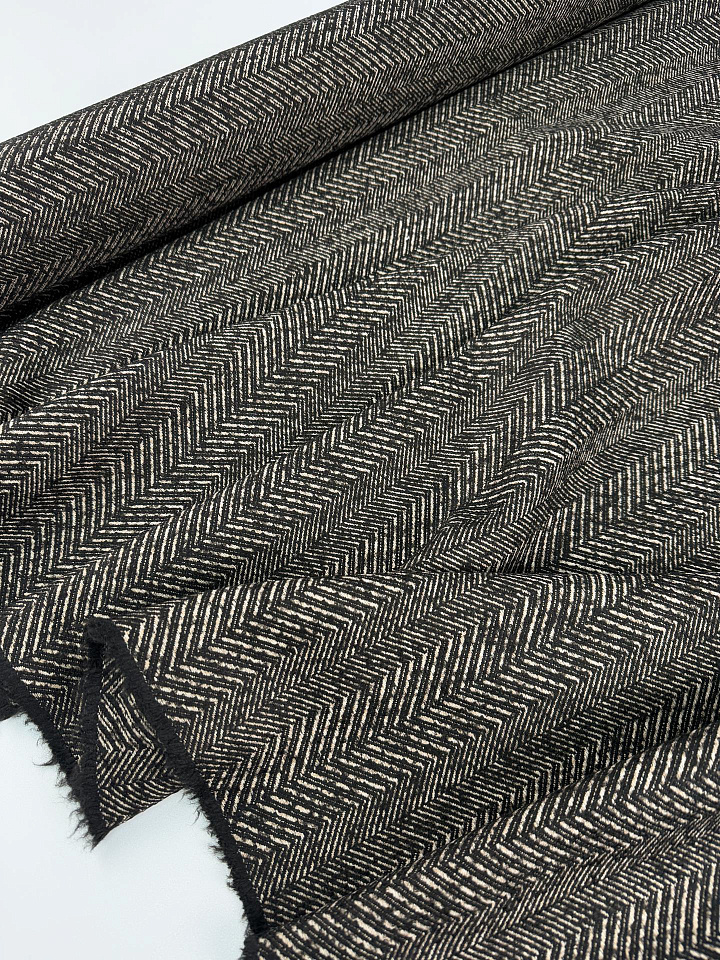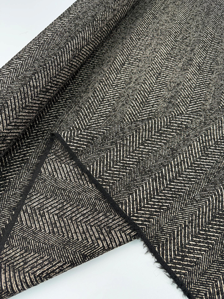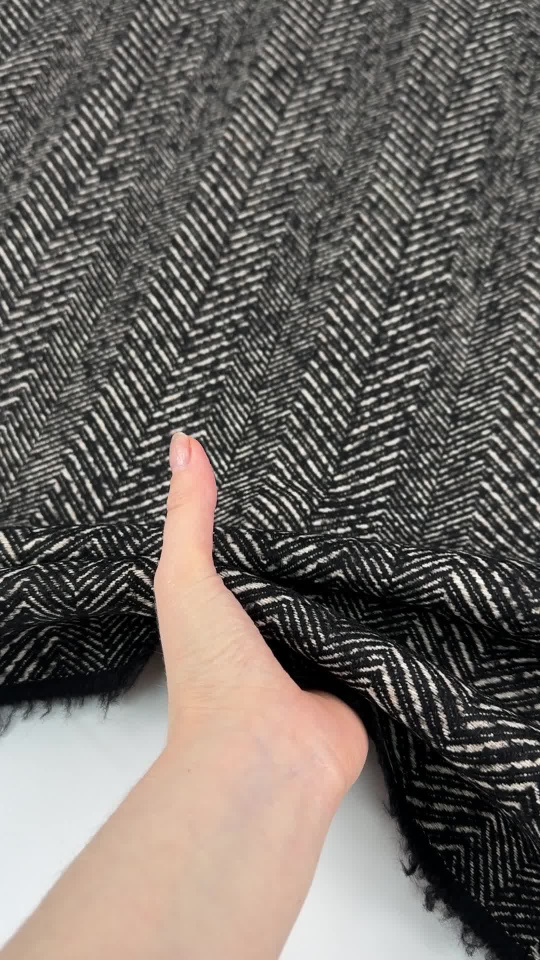 Пальтовая шерсть+хлопок (н) черно-молочная поперечная елочка полоска - цена 5 200 ₽ У нас самые доступные цены на в Москве, доставка по всей России - интернет магазин тканей Тессутидея. Артикул товара для заказа - 09-2199. Страна производства ткани – Италия. Ширина этого материала - 150. Состав - Шерсть 60% хлопок 40%. Наличие остатков на складе - 6 м