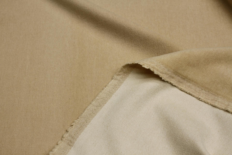Пальтовая велюр (о) светло-бежевая - цена 6 800 ₽ У нас самые доступные цены на Пальтовые ткани в Москве, доставка по всей России - интернет магазин тканей Тессутидея. Артикул товара для заказа - 09-2059. Страна производства ткани – Италия. Ширина этого материала - 150. Состав - Беби кэмел 70% верблюжья шерсть 30%. Наличие остатков на складе - 7.5 м