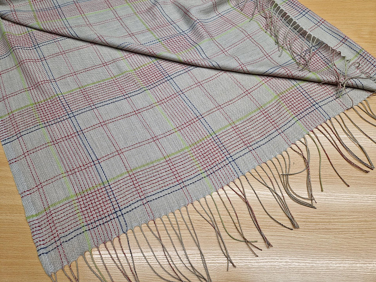 Пашмина купон (2,1м) (н) красно-сине-зеленая клетка на серо-бежевом Арт. 17-1007