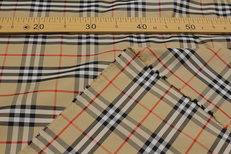 Плащевая (н) черно-бежево-красная клетка - цена 2 100 ₽ У нас самые доступные цены на в Москве, доставка по всей России - интернет магазин тканей Тессутидея. Артикул товара для заказа - 11-0472. Страна производства ткани – Италия. Ширина этого материала - 155. Состав - Полиамид 100%. Наличие остатков на складе - 3.15 м