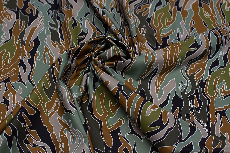 Плащевая с водоотталкивающим покрытием (о) черно-коричнево-зеленый рисунок Арт. 11-0478