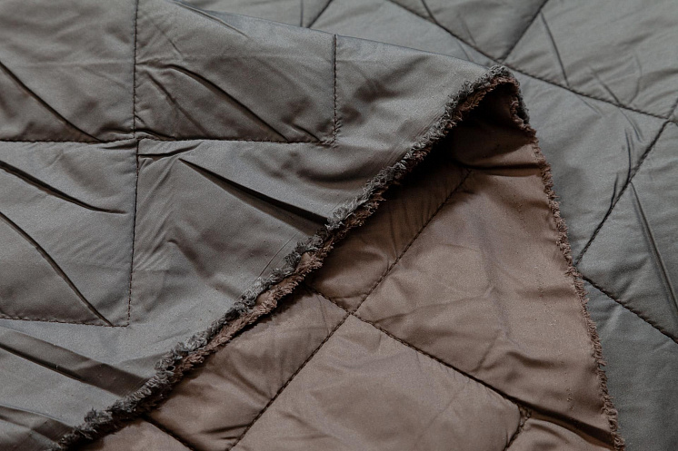 Плащевая стежка дабл с водоотталкивающим покрытием 480 г/м (о) серая/мокко - цена 3 600 ₽ У нас самые доступные цены на в Москве, доставка по всей России - интернет магазин тканей Тессутидея. Артикул товара для заказа - 11-0529. Страна производства ткани – Италия. Ширина этого материала - 150. Состав - Полиамид 100%. Наличие остатков на складе - 1.5 м