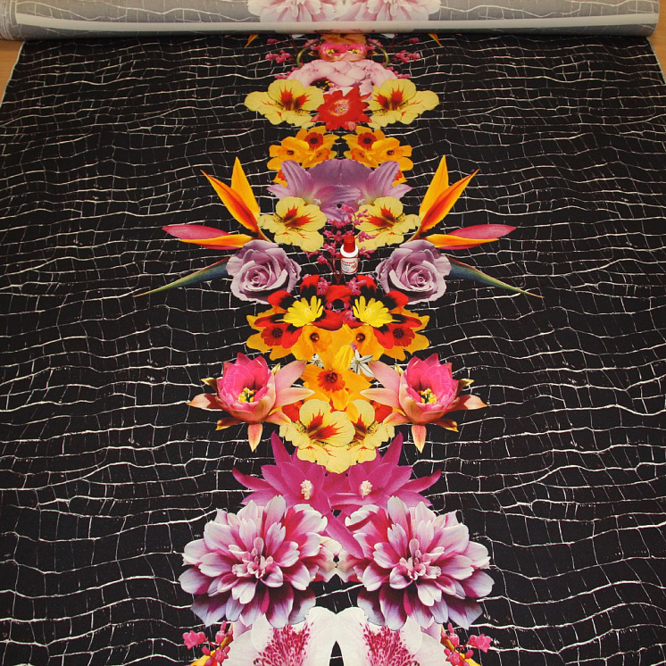 Плательная Cadi купон (1,7м) стрейч (н) крупные цветы на черном ш-130см - цена 2 100 ₽ У нас самые доступные цены на Плательные ткани кади в Москве, доставка по всей России - интернет магазин тканей Тессутидея. Артикул товара для заказа - 03-1905. Страна производства ткани – Италия. Ширина этого материала - 130. Состав - Ацетат 95% эластан 5%. Наличие остатков на складе - 3.45 м