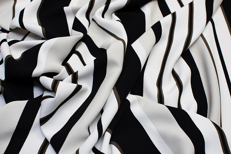 Плательная кади стрейч (н) черно-белая полоска - цена 1 600 ₽ У нас самые доступные цены на Плательные ткани кади в Москве, доставка по всей России - интернет магазин тканей Тессутидея. Артикул товара для заказа - 04-1240. Страна производства ткани – Италия. Ширина этого материала - 135. Состав - Вискоза 96% эластан 4%. Наличие остатков на складе - 6.8 м