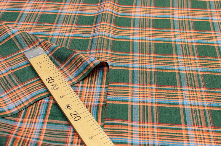 Плательная клетка (н) оранжево-голубая на зеленом - цена 1 800 ₽ У нас самые доступные цены на Плательные ткани в Москве, доставка по всей России - интернет магазин тканей Тессутидея. Артикул товара для заказа - 04-1173. Страна производства ткани – Италия. Ширина этого материала - 150. Состав - Вискоза 70% лен 30%. Наличие остатков на складе - 2.8 м