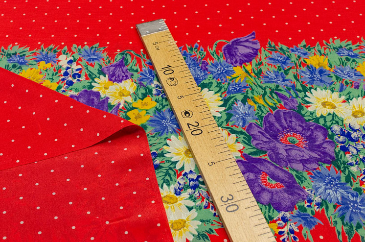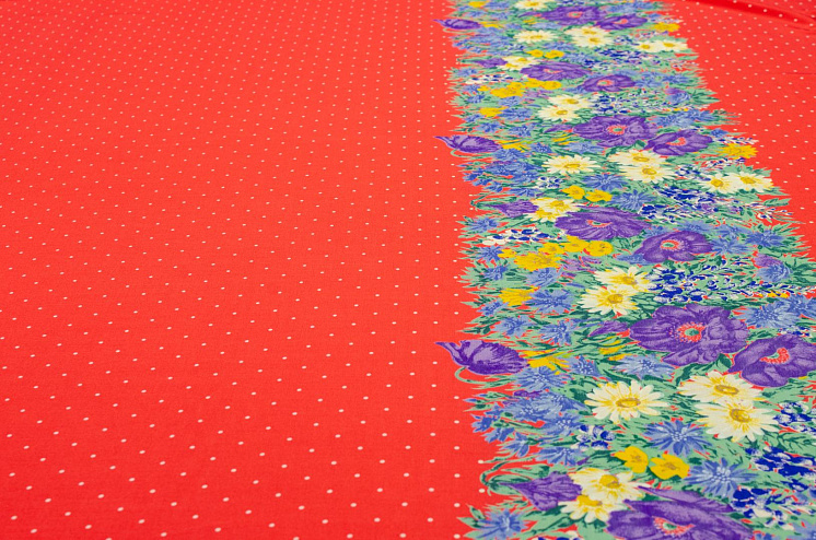 Плательная (н) белый горох и цветочный орнамент на красном Арт. 03-5661