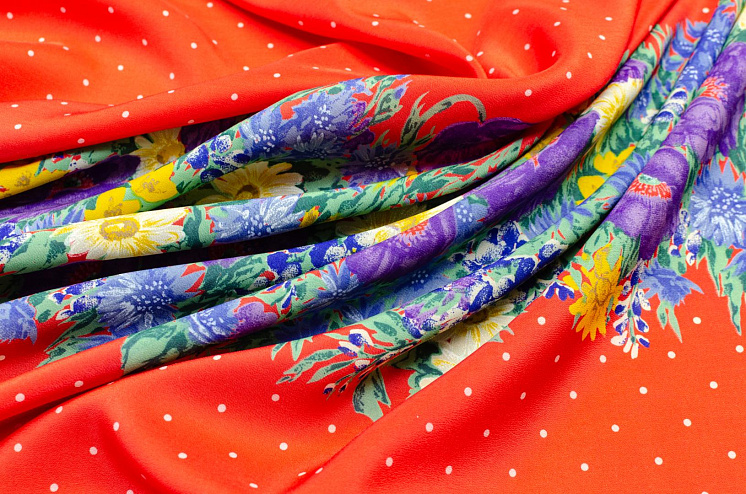 Плательная (н) белый горох и цветочный орнамент на красном - цена 1 900 ₽ У нас самые доступные цены на Плательные ткани в Москве, доставка по всей России - интернет магазин тканей Тессутидея. Артикул товара для заказа - 03-5661. Страна производства ткани – Италия. Ширина этого материала - 140. Состав - Ацетат 100%. Наличие остатков на складе - 6.8 м