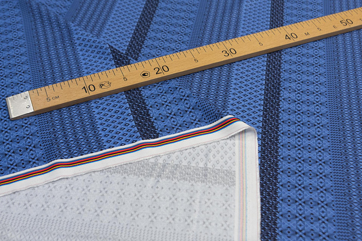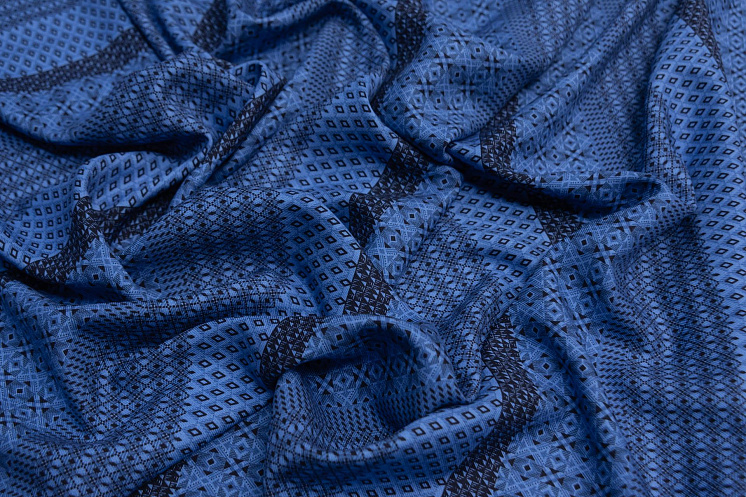 Плательная (н) черно-голубой геометрический орнамент в стиле Prada - цена 1 600 ₽ У нас самые доступные цены на Плательные ткани в Москве, доставка по всей России - интернет магазин тканей Тессутидея. Артикул товара для заказа - 04-1282. Страна производства ткани – Италия. Ширина этого материала - 140. Состав - Вискоза 100%. Наличие остатков на складе - 3.4 м