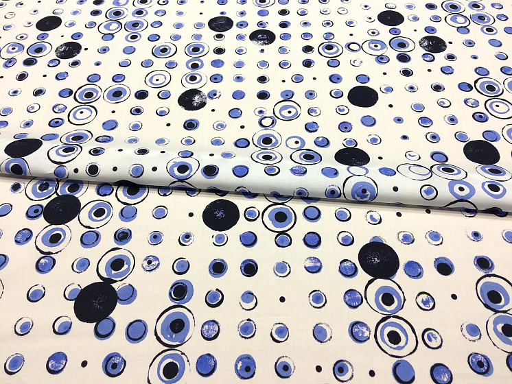 Плательная (н) черно-сине-голубой стилизованный горох на белом - цена 1 200 ₽ У нас самые доступные цены на Хлопок набивной в Москве, доставка по всей России - интернет магазин тканей Тессутидея. Артикул товара для заказа - 01-4481. Страна производства ткани – Италия. Ширина этого материала - 140. Состав - Хлопок 100%. Наличие остатков на складе - 2.9 м