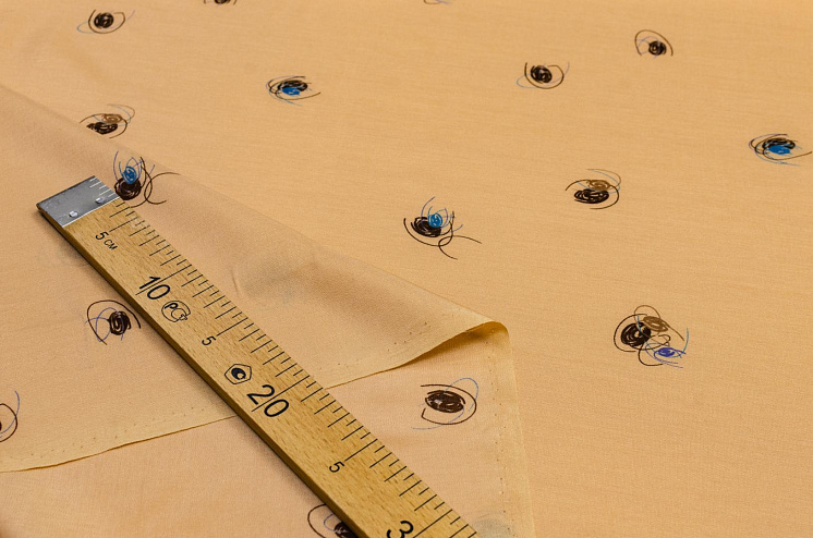 Плательная (н) коричнево-голубой орнамент на бежевом - цена 1 900 ₽ У нас самые доступные цены на в Москве, доставка по всей России - интернет магазин тканей Тессутидея. Артикул товара для заказа - 03-5667. Страна производства ткани – Италия. Ширина этого материала - 140. Состав - Ацетат 100%. Наличие остатков на складе - 4.4 м