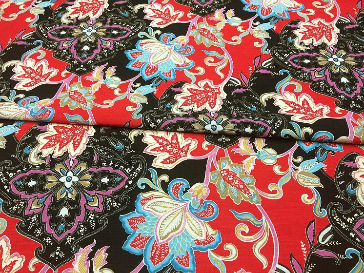 Плательная (н) крупный красно-черно-голубой растительный орнамент Арт. 04-1098
