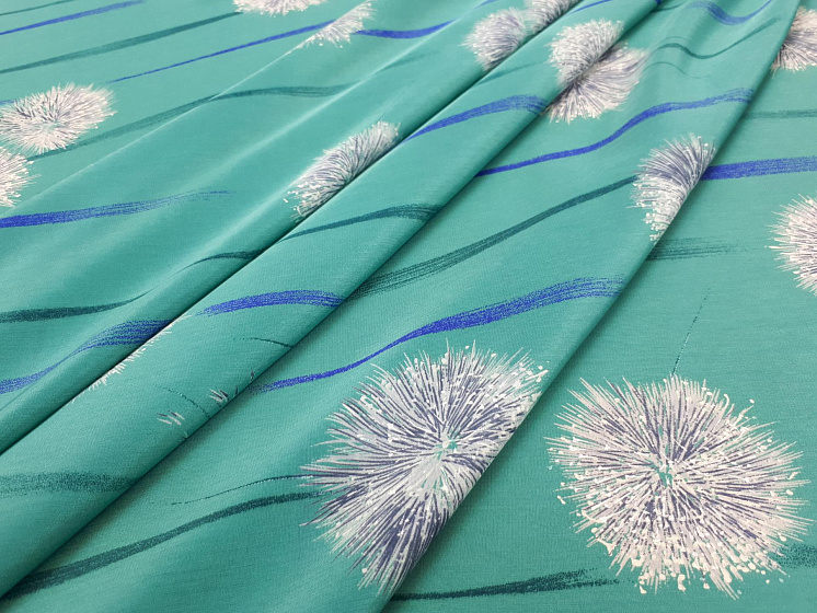 Плательная (н) одуванчики на бирюзовом - цена 1 900 ₽ У нас самые доступные цены на Плательные ткани в Москве, доставка по всей России - интернет магазин тканей Тессутидея. Артикул товара для заказа - 03-5663. Страна производства ткани – Италия. Ширина этого материала - 140. Состав - Ацетат 100%. Наличие остатков на складе - 4 м