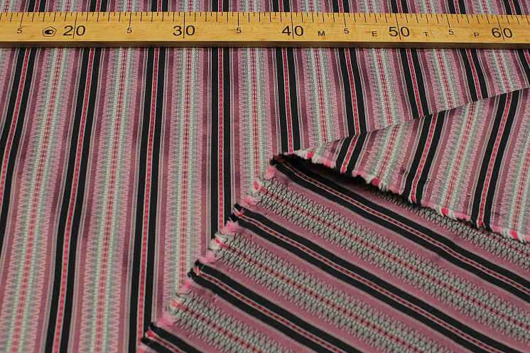 Плательная (н) серо-черно-розовые стилизованные полосы - цена 2 200 ₽ У нас самые доступные цены на Плательные ткани в Москве, доставка по всей России - интернет магазин тканей Тессутидея. Артикул товара для заказа - 03-6926. Страна производства ткани – Италия. Ширина этого материала - 155. Состав - Вискоза 30% ацетат 70%. Наличие остатков на складе - 14.5 м