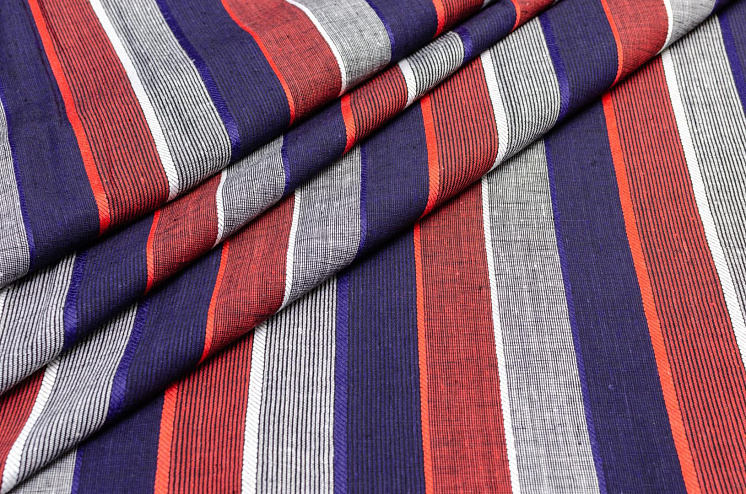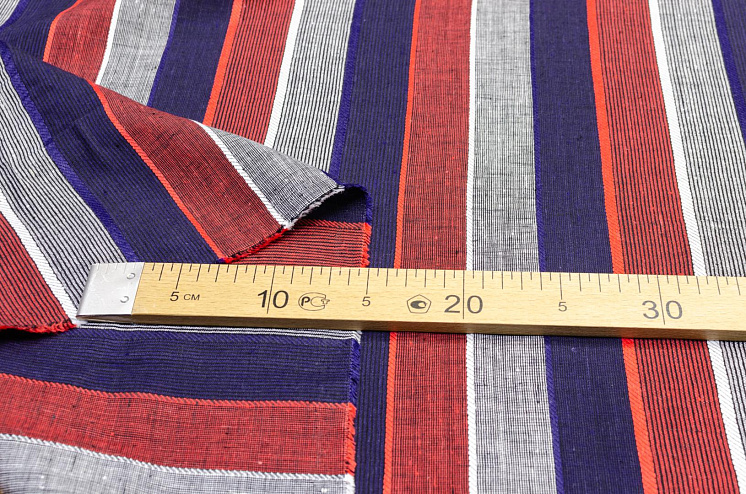 Плательная (н) сине-бело-красно-черная стилизованная полоска - цена 1 600 ₽ У нас самые доступные цены на Плательные ткани в Москве, доставка по всей России - интернет магазин тканей Тессутидея. Артикул товара для заказа - 03-5671. Страна производства ткани – Италия. Ширина этого материала - 150. Состав - Вискоза 50% хлопок 25% лен 25%. Наличие остатков на складе - 5.5 м