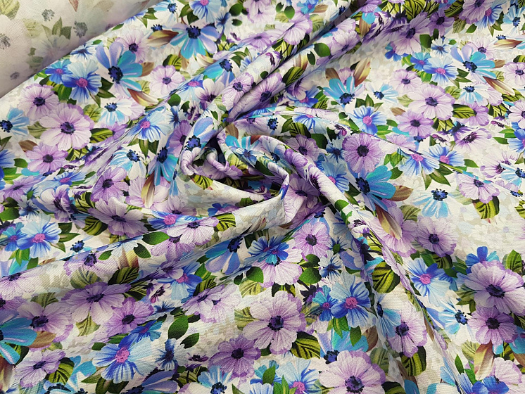 Плательная (н) сиренево-голубой цветочный орнамент - цена 2 200 ₽ У нас самые доступные цены на Хлопок набивной в Москве, доставка по всей России - интернет магазин тканей Тессутидея. Артикул товара для заказа - 01-3962. Страна производства ткани – Италия. Ширина этого материала - 150. Состав - Хлопок 100%. Наличие остатков на складе - 2.75 м