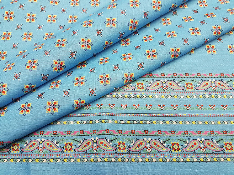 Плательная (н) цветочно-геометрический орнамент на голубом Арт. 01-4152
