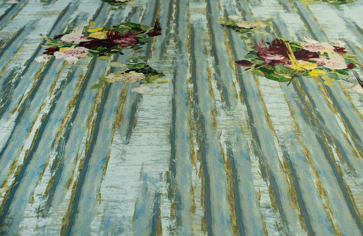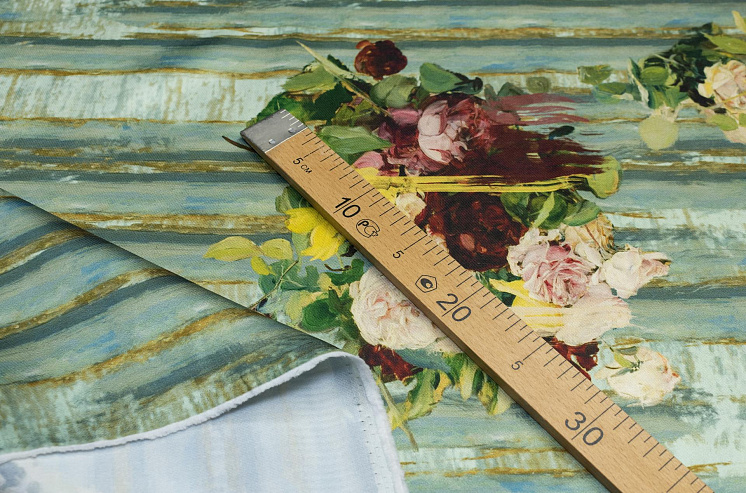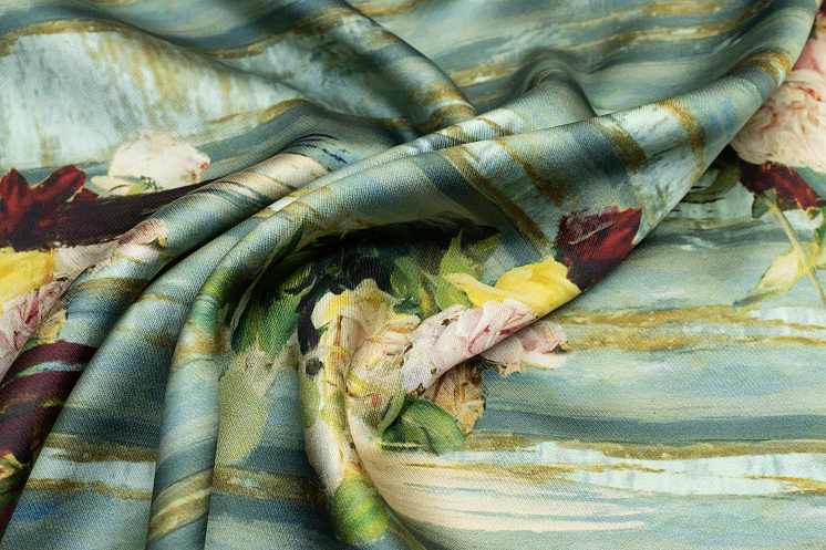 Плательная (н) цветочный орнамент на сине-зелено-коричневой стилизованной полоске - цена 3 500 ₽ У нас самые доступные цены на Плательные ткани в Москве, доставка по всей России - интернет магазин тканей Тессутидея. Артикул товара для заказа - 03-5927. Страна производства ткани – Италия. Ширина этого материала - 145. Состав - Шелк 50% полиамид 50%. Наличие остатков на складе - 3.7 м