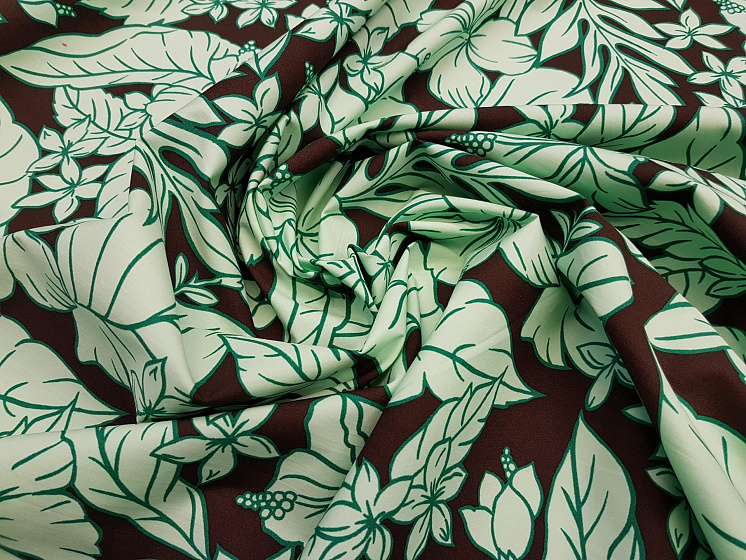 Плательная (н) зеленый цветочный орнамент на коричневом Арт. 01-3977
