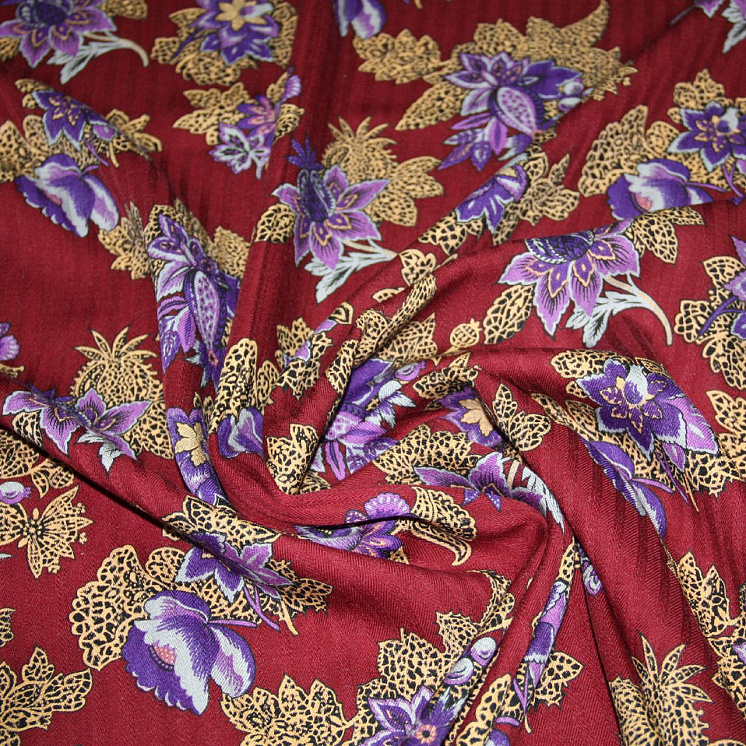 Плательная (н) желто-сиреневый цветочный орнамент на бордовом - цена 2 900 ₽ У нас самые доступные цены на Плательные ткани в Москве, доставка по всей России - интернет магазин тканей Тессутидея. Артикул товара для заказа - 17-0673. Страна производства ткани – Италия. Ширина этого материала - 140. Состав - Шерсть 100%. Наличие остатков на складе - 2.5 м