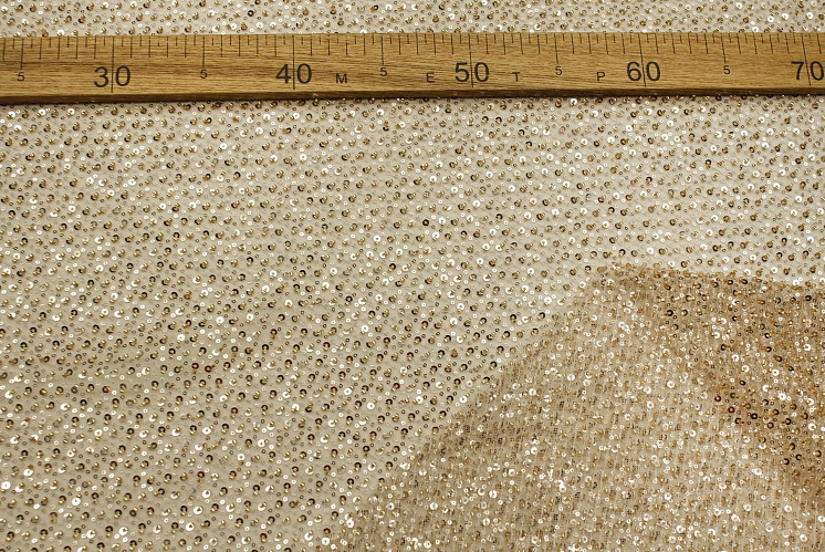 Плательная сетка расшитая пайетками и стеклярусом (о) бежевая Арт. 03-7431