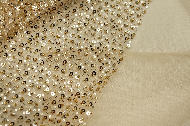 Плательная сетка расшитая пайетками и стеклярусом (о) бежевая - цена 6 200 ₽ У нас самые доступные цены на Сетки и фатин в Москве, доставка по всей России - интернет магазин тканей Тессутидея. Артикул товара для заказа - 03-7431. Страна производства ткани – Италия. Ширина этого материала - 125. Состав - Полиамид 100%. Наличие остатков на складе - 2.1 м