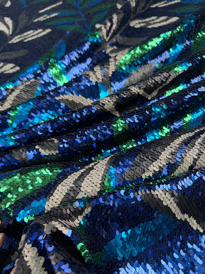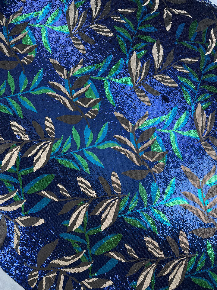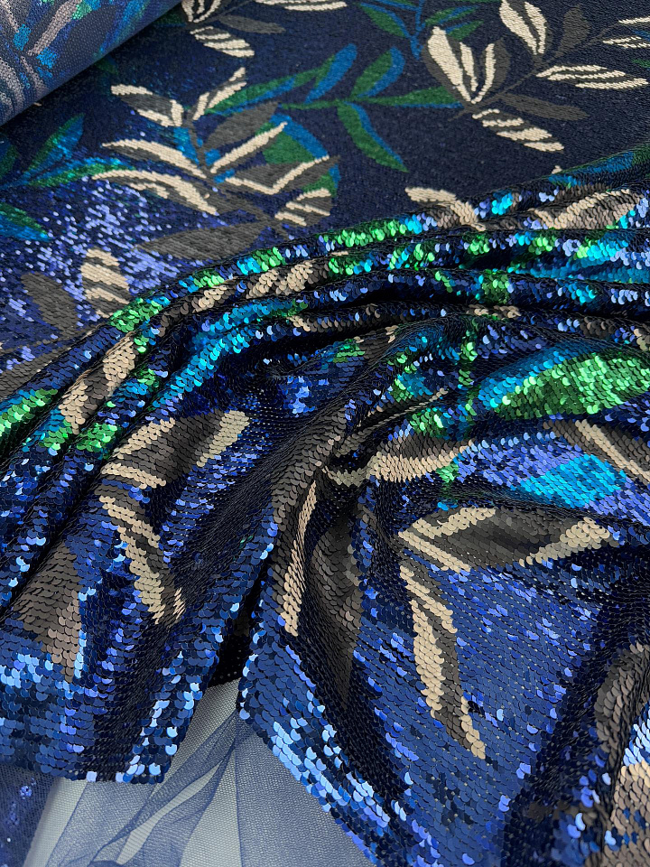 Плательная сетка расшитая пайетками (н) растительный рисунок на темно-синем - цена 5 500 ₽ У нас самые доступные цены на в Москве, доставка по всей России - интернет магазин тканей Тессутидея. Артикул товара для заказа - 03-7537. Страна производства ткани – Италия. Ширина этого материала - 145. Состав - Полиамид 100%. Наличие остатков на складе - 10.9 м